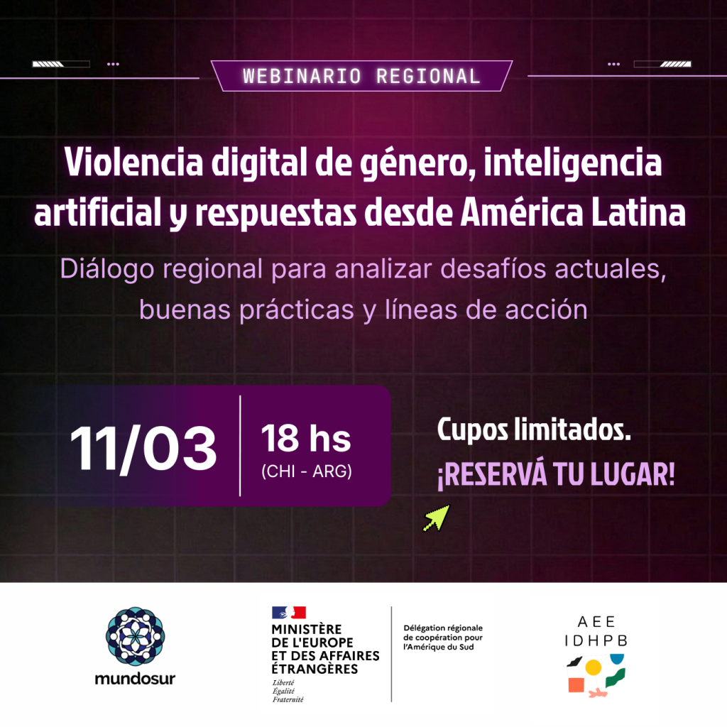 Este webinario está diseñado para fortalecer la articulación regional en el abordaje de la violencia digital de género desde el cruce entre inteligencia artificial, algoritmos y derechos humanos; un campo aún poco explorado en la región.